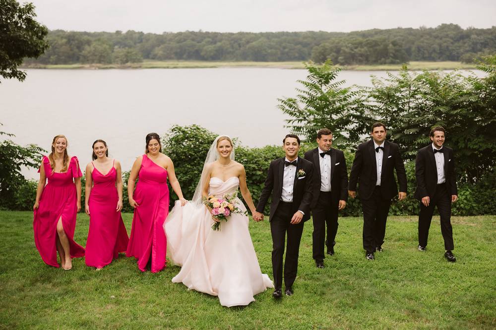 The historic estate and sweeping lawns created the perfect setting for a wedding day filled with laughter and enjoying moments, especially on the dance floor. The couple exchanged vows during an outdoor lakeside ceremony surrounded by beautiful water views.