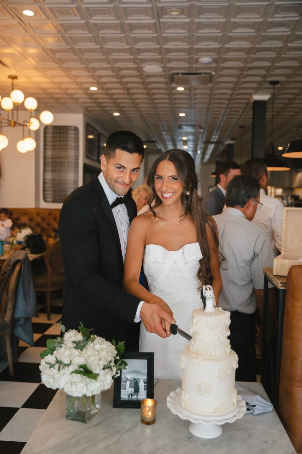 For this elegant wedding, Olivia found her dream wedding dress with us at The White Dress by the Shore in Clinton, Connecticut. Her look was elegant and modern, all anchored by her custom wedding dress by designer Antontio Gual. We are elated to share their stunning wedding day photos with you!