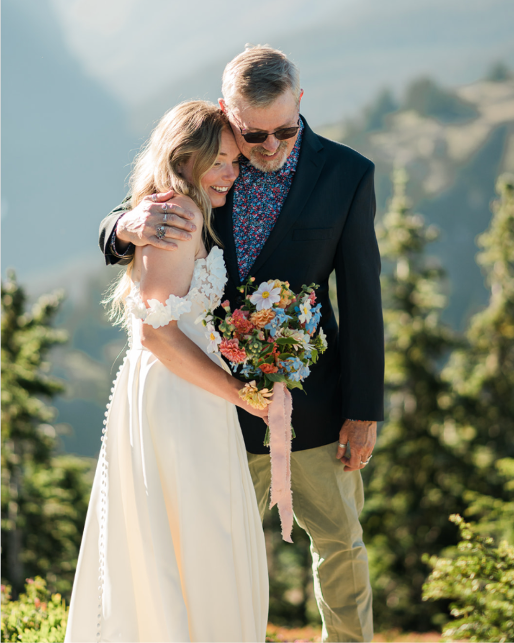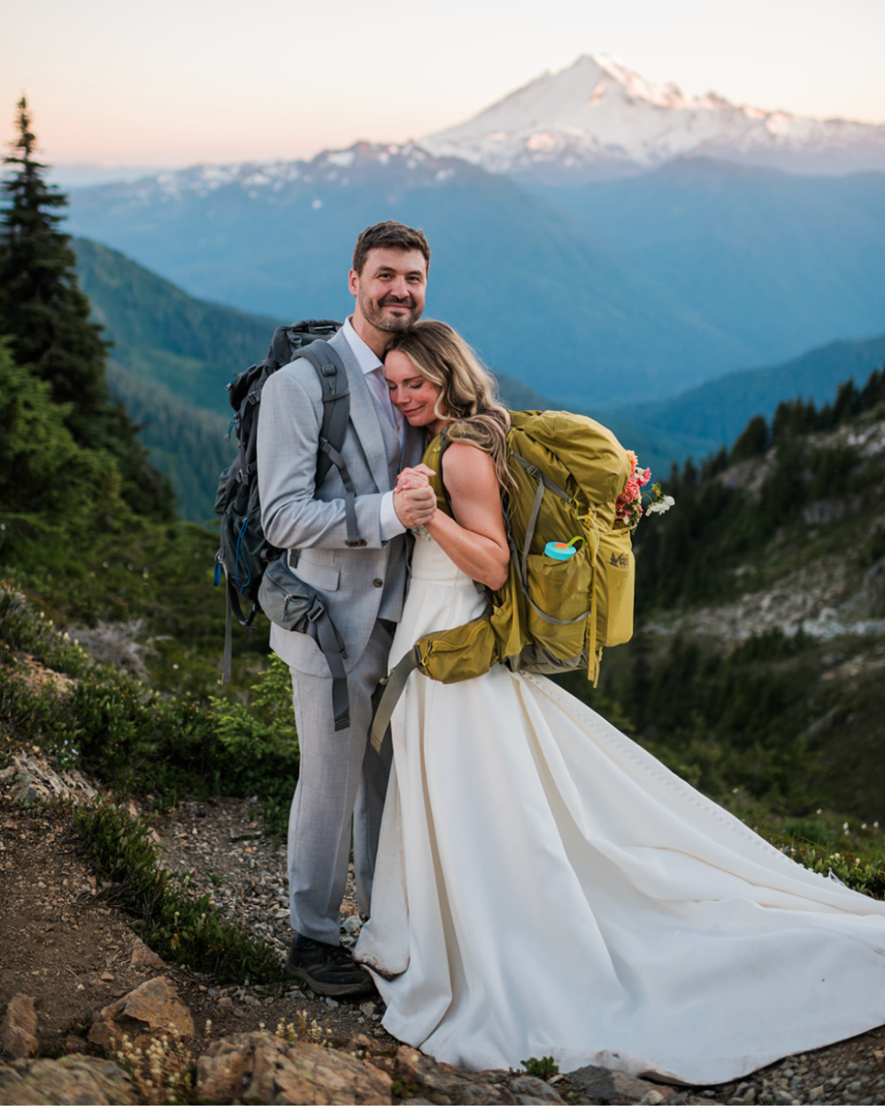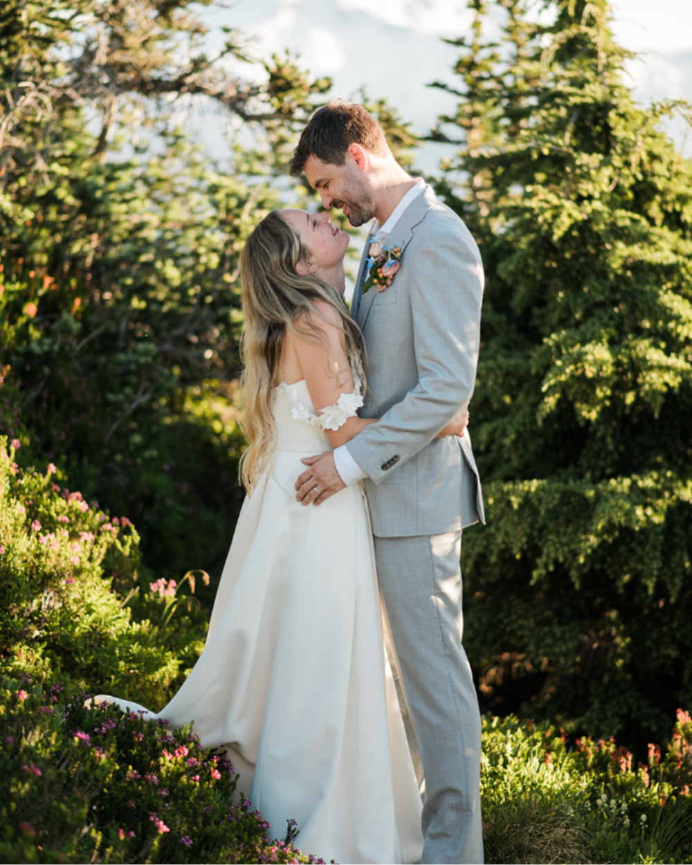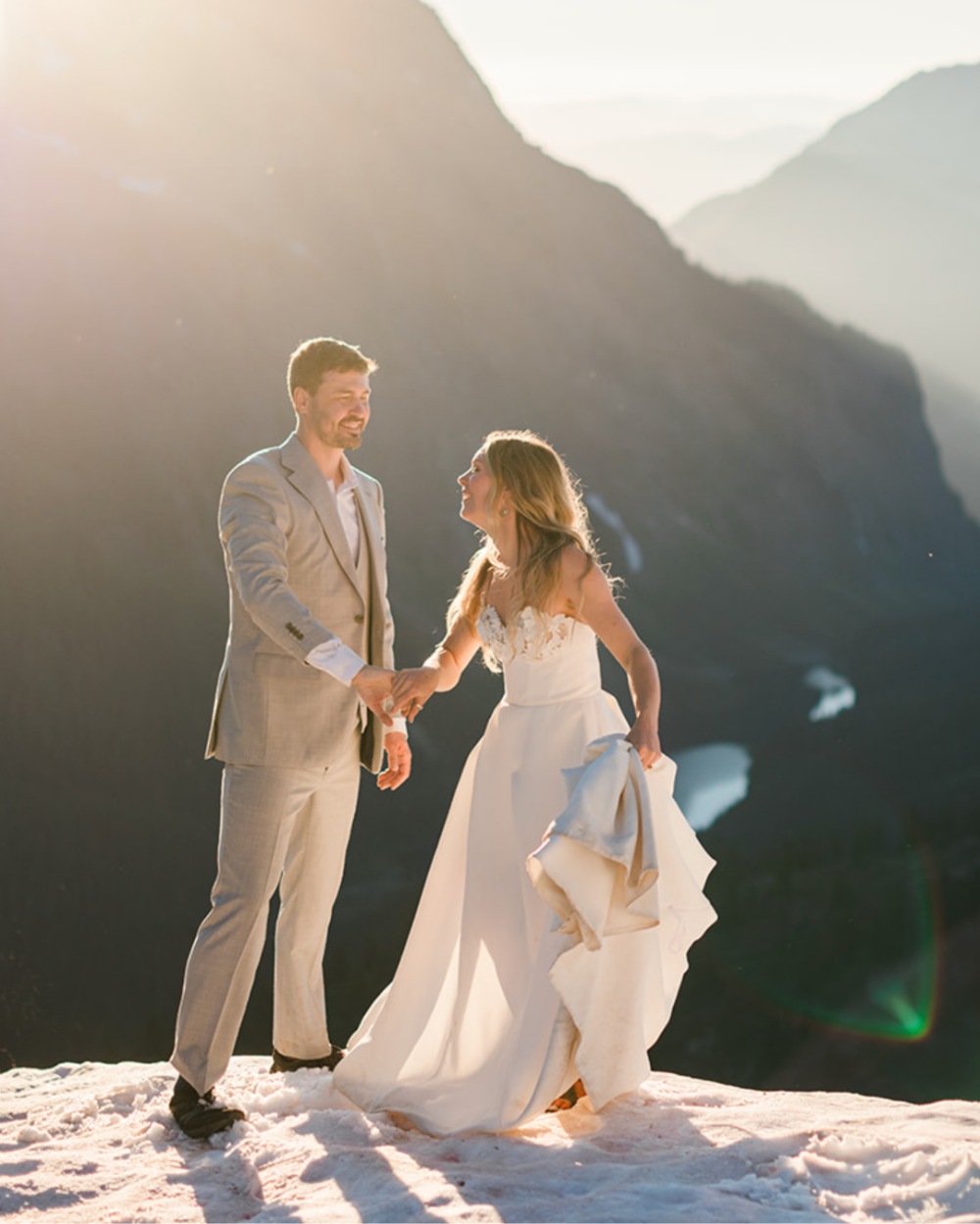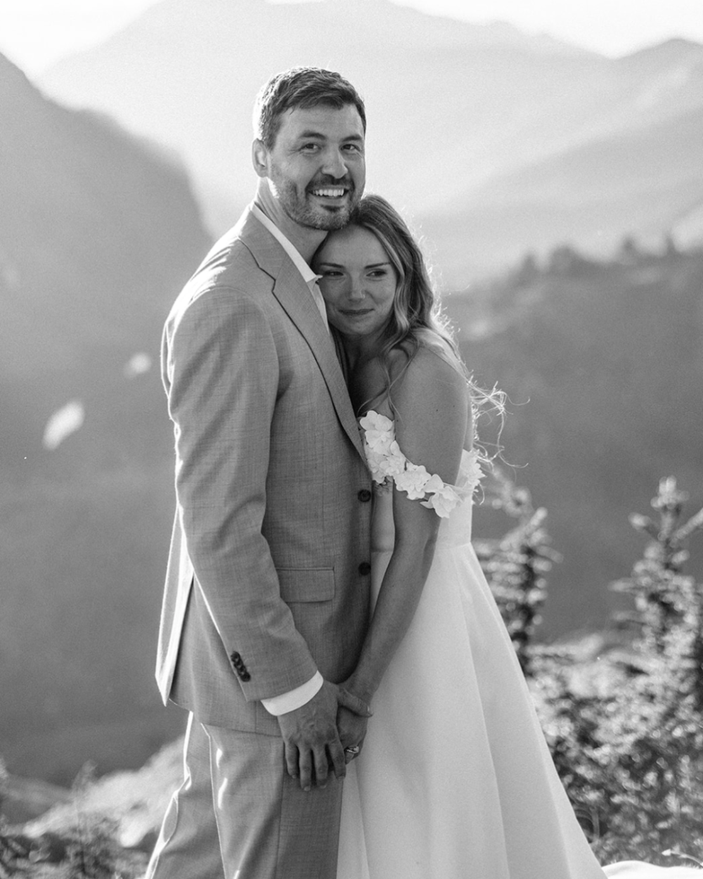 And "yes," this adventurous bride hiked in her wedding gown. Hidden pockets and a flowing slit added comfort and movement, making it the perfect choice for a day filled with love, laughter, and high-altitude romance.