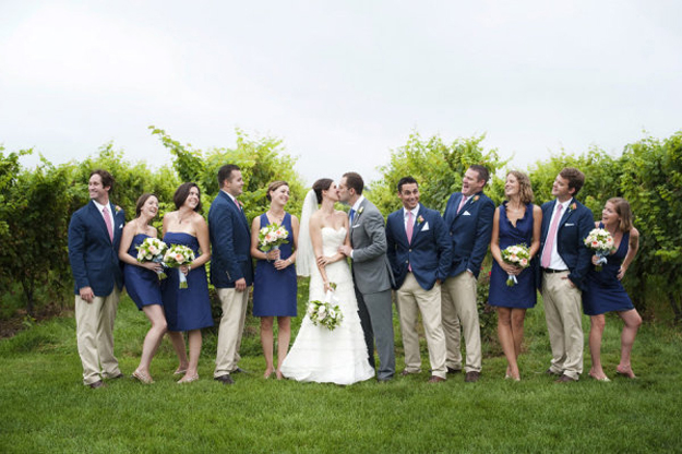 This unbelievable vineyard wedding was held just hours before the historic Hurricane Irene hit the east coast. The gorgeous couple (not to mention brave), Annie and Uri chose Saltwater Farm Vineyard in Stonington, Connecticut as the perfect backdrop to exchange vows and celebrate with friends and family. Soft, thoughtful details including floral arrangements by  Hana Floral Design made for a truly classic New England wedding (wild weather included). We love how the slightly overcast sky plays off of the bright smile of our bride Annie, who wore a Judd Waddell gown and was beautified by fellow inWhite member, Jennie Fresa â Makeup and Skincare Boutiquerie. The festivities kicked off inside the venue just as the rain started to fall and the catering by Gourmet Galley Catering looked to be nothing short of mouth watering! These truly remarkable images, photographed by none other then Justin & Mary, truly capture all of the emotion, beauty and celebration that the day held. Congratulations to Annie and Uri for holding off the storm!