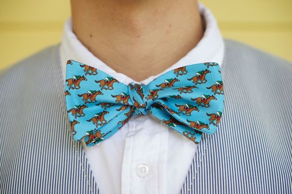 The fashion inspiration for the shoot was really quirky, preppy. We love the pop of Tiffany Blue incorporated in the accessories and the quirky tuxedo detail on the Amy Kuschel gown. It was an interesting contrast to the very casual seersucker vest and pants and fun patterned tie!