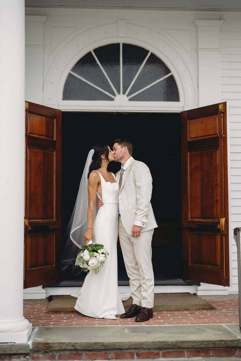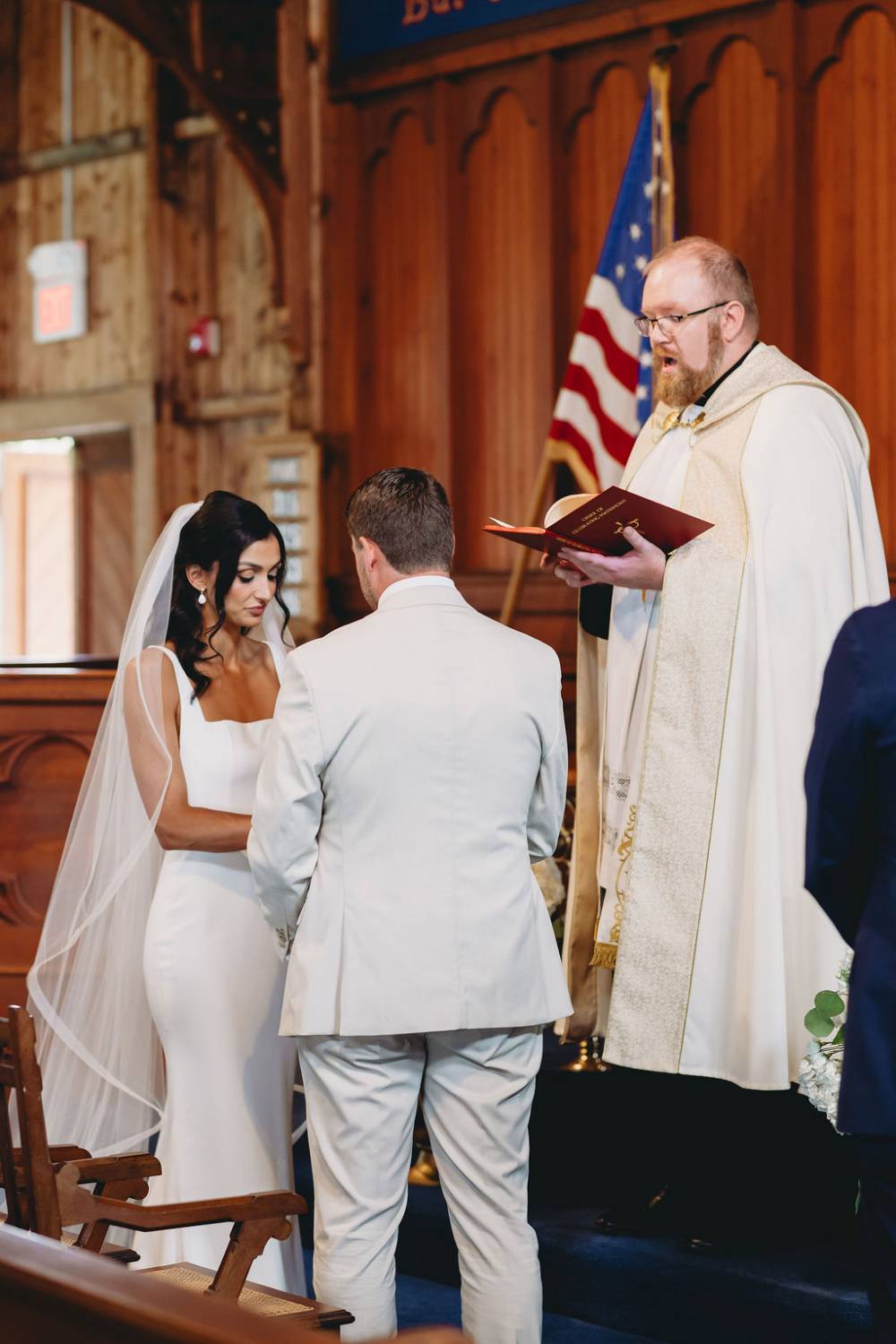 From the historic white church ceremony to the garden portraits and lively outdoor reception, every part of this wedding day reflected a timeless coastal aesthetic. The gorgeous lush greenery, soft white florals, and natural textures created a look that felt elevated yet inviting, which was perfect for this summer wedding by the sea.
