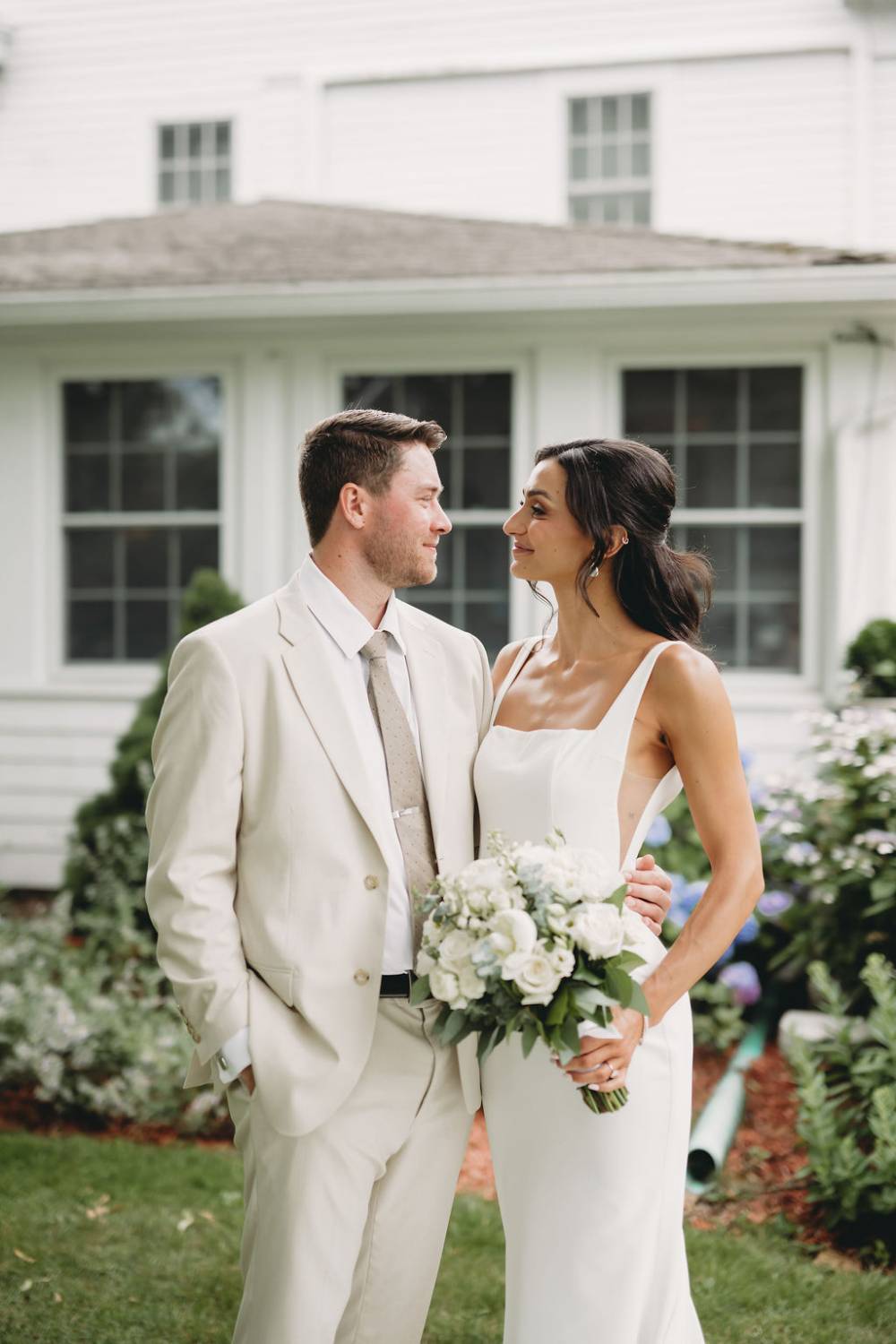 We just love it when one of our brides chooses a wedding dress that feels effortlessly timeless and perfectly aligned with their personal style. Caroline’s classic coastal wedding in Watch Hill, Rhode Island is the ideal example of how clean lines, thoughtful details, and a stunning seaside setting come together beautifully for our The White Dress by the Shore bride!